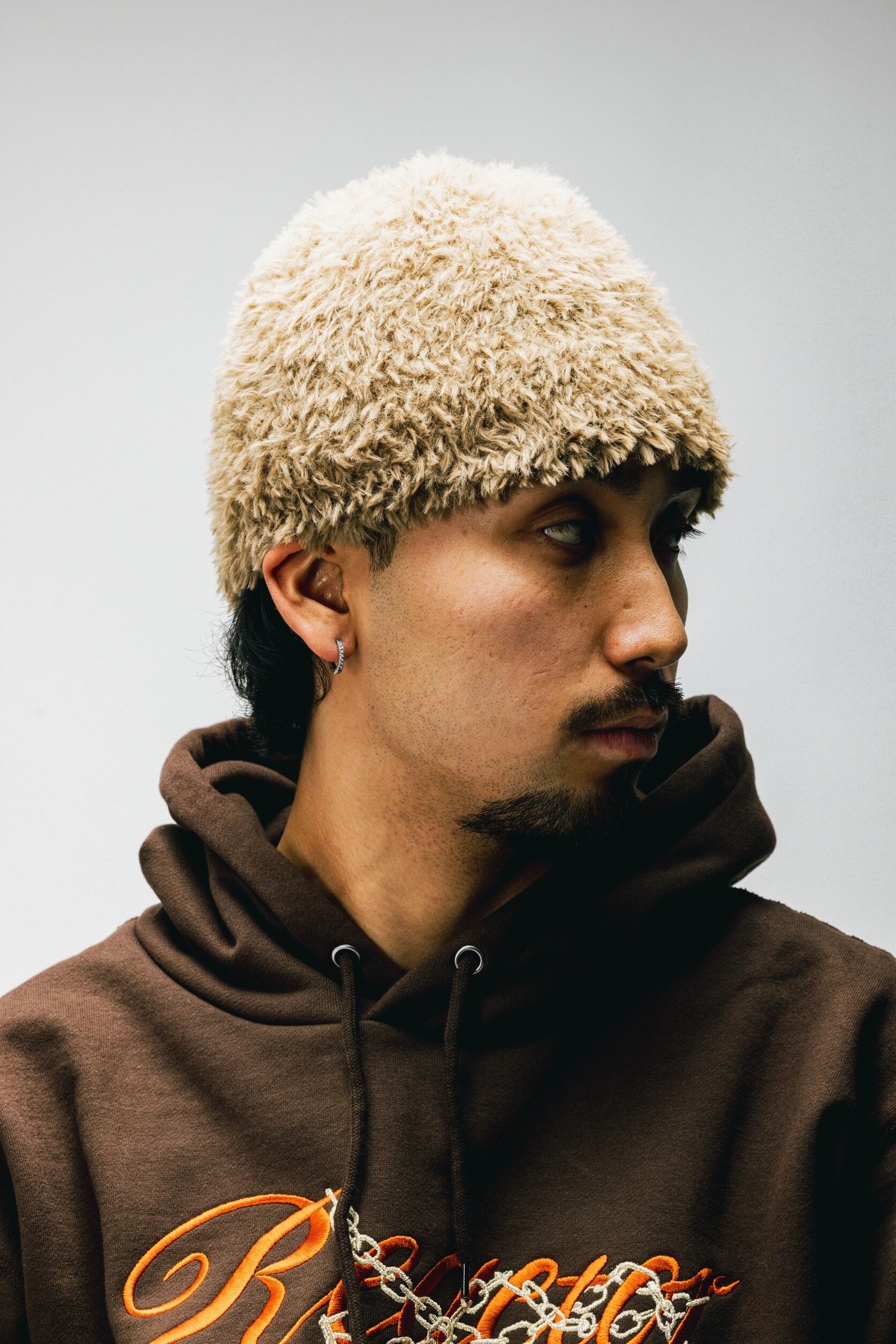 Reactorのファービーニーは、毛足のあるファー素材を使用し、シンプルながらも一目で印象に残る仕上がり。